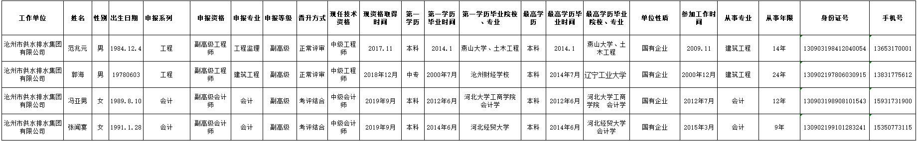 2021年供排水集團申報高級職稱人員登記表